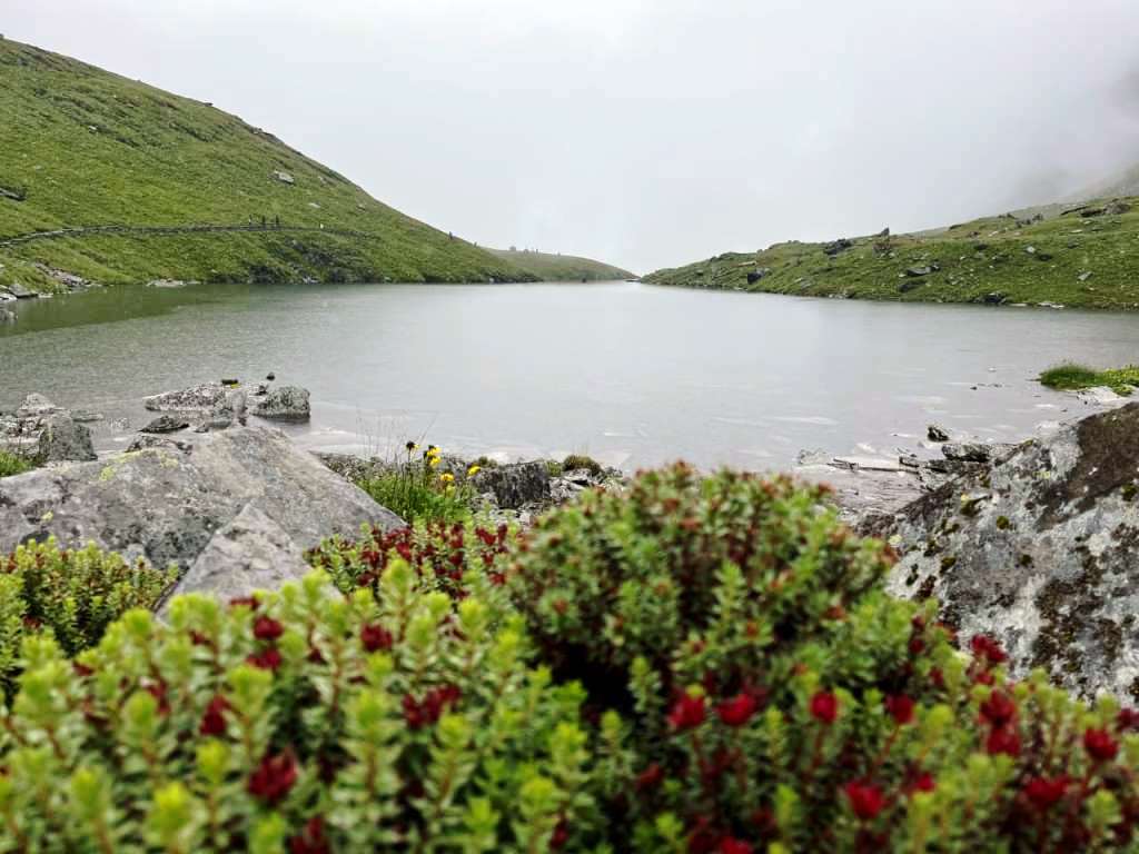 यहाँबाट हामीहरु ठाडै ओरालो भीरको बाटो झ¥यौं । केही तल पुगेपछि साथीहरुले पानी बगिरहेको खोला देखेपछि यही खोलाको मुहानमा ताल हुन सक्ने आँकलन अनुसार यात्रा अगाडि बढ्यो । म सुन्दर फूलै फूलको बीचको बाटो हिँड्दै प्रकृतिको सुन्दरतामा हराएँ । स्वाँ–स्वाँ गर्दै लठ्ठीको सहारामा विस्तारै कछुवाको गतिमा पाइला अगाडि बढाइरहेँ । छिनछिनमा कुहिरोले छोपेर आफ्नो नजिक हिँडिरहेका साथीहरुलाई पनि देख्न नसकिने बनाइदिन्थ्यो । फेरी छिनभरमै कुहिरो हराएर आँखाले धित नमरुन्जेल परसम्मको दृश्य आँखामा ठोकिन्थ्यो । तीन दिनदेखि इन्टरनेट र फोन सम्पर्कबाट टाढा भएका हामीहरु एउटा डाँडोमा पुगेर चिच्चाएर पछाडि आउँदै गरेका साथीहरुलाई बाटोको सङ्केत दिने ग¥यौँ ।
