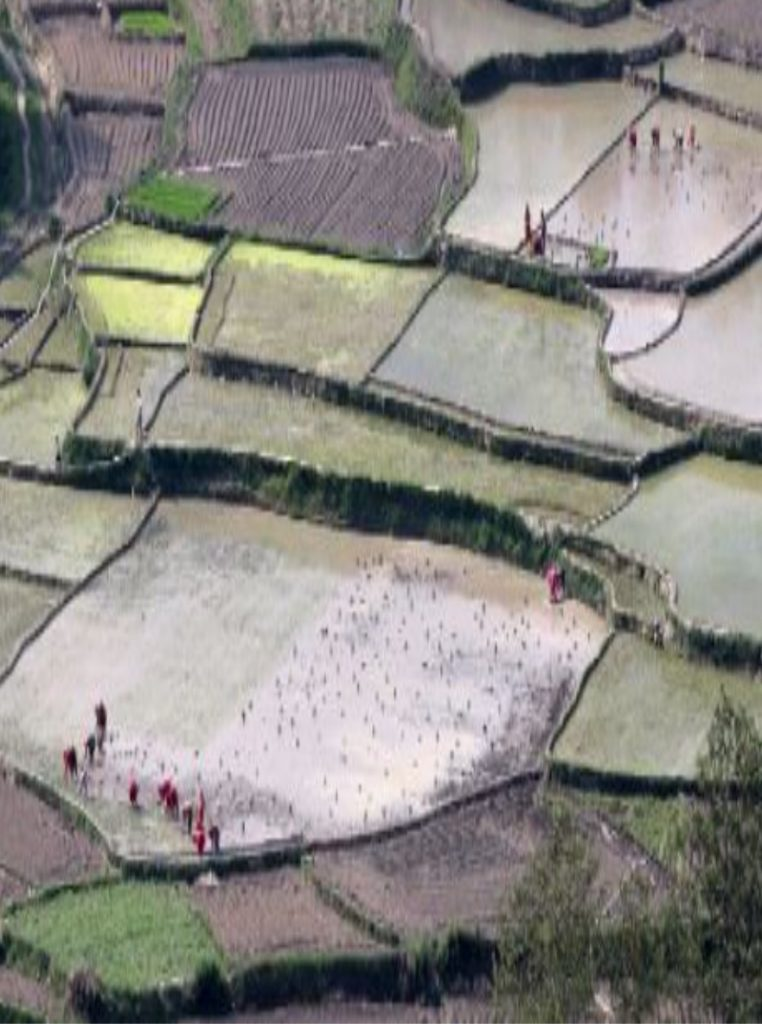 निषेधाज्ञामा शहरबजारसँगै ग्रामीण क्षेत्रसमेत सुनसान भइरहेको बेलामा मङ्गला गाउँपालिका–३ बरङ्जा आल्टामा यतिबेला धान रोप्ने चटारो छ । असार महिनामा जस्तै किसान ब्याडमा राखेको बीउ काढ्न व्यस्त छन् । रोपाहारले धमाधम रोपिरहेका छन्, जुवा, हलो र गोरुको विकल्पमा ट्र्याक्टरले जोतेर हिल्याइरहेको छ ।