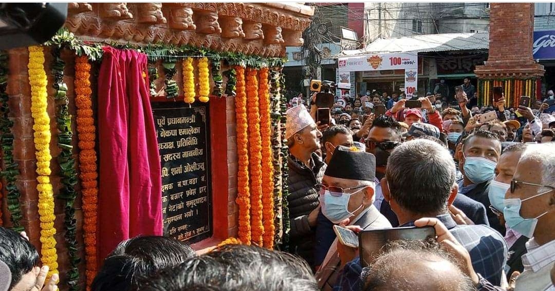काठमाडौं, ११ पुस । दमक– ६ नगरपालिकासहित स्थानीयवासीका सहभागितामा करिब २१ लाखबाट निर्मित गोल्डेन गेटको आइतबार उद्घाटन गर्दै नेकपा(एमाले)का अध्यक्ष केपी शर्मा ओली । तस्वीर रासस