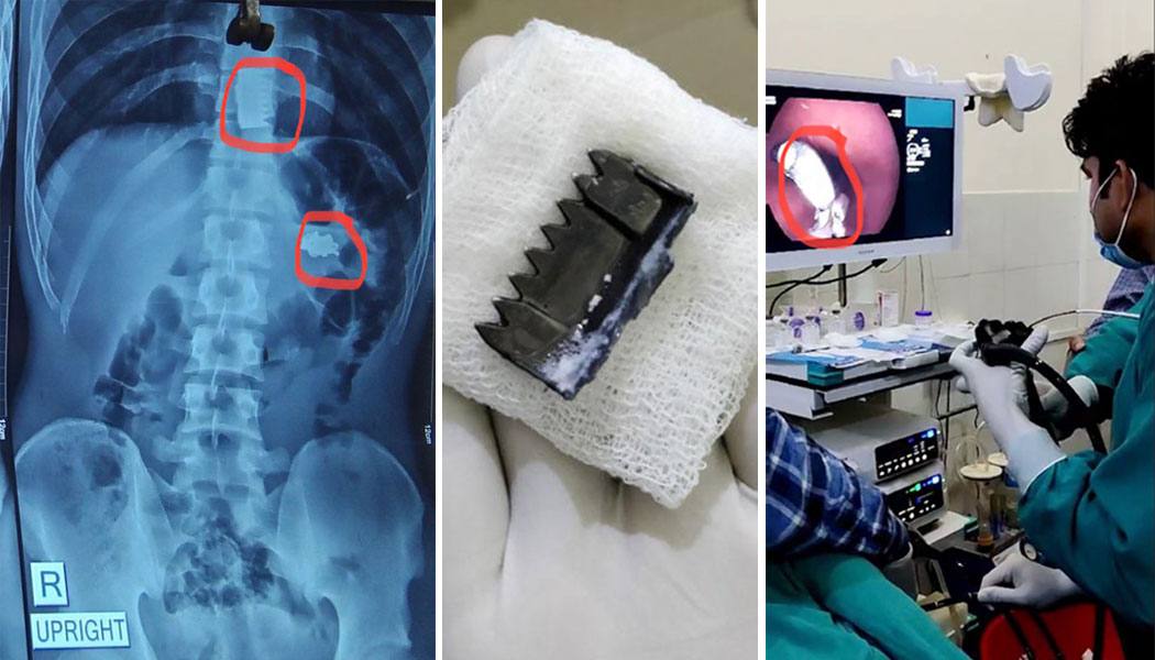 विराटनगर । विराटनगरस्थित नोबेल शिक्षण अस्पतालमा एक बिरामीको पेटबाट पेटीको ‘बक्कल’ र सिक्री निकालिएको छ । भोजपुरको भोजपुर नगरपालिका-१२, टक्सारका २१ वर्षीय युवकको पेटबाट कम्मरमा बाँध्ने पेटीको बक्कल र घाँटीमा लगाउने फलामको सिक्री निकालिएको हो ।