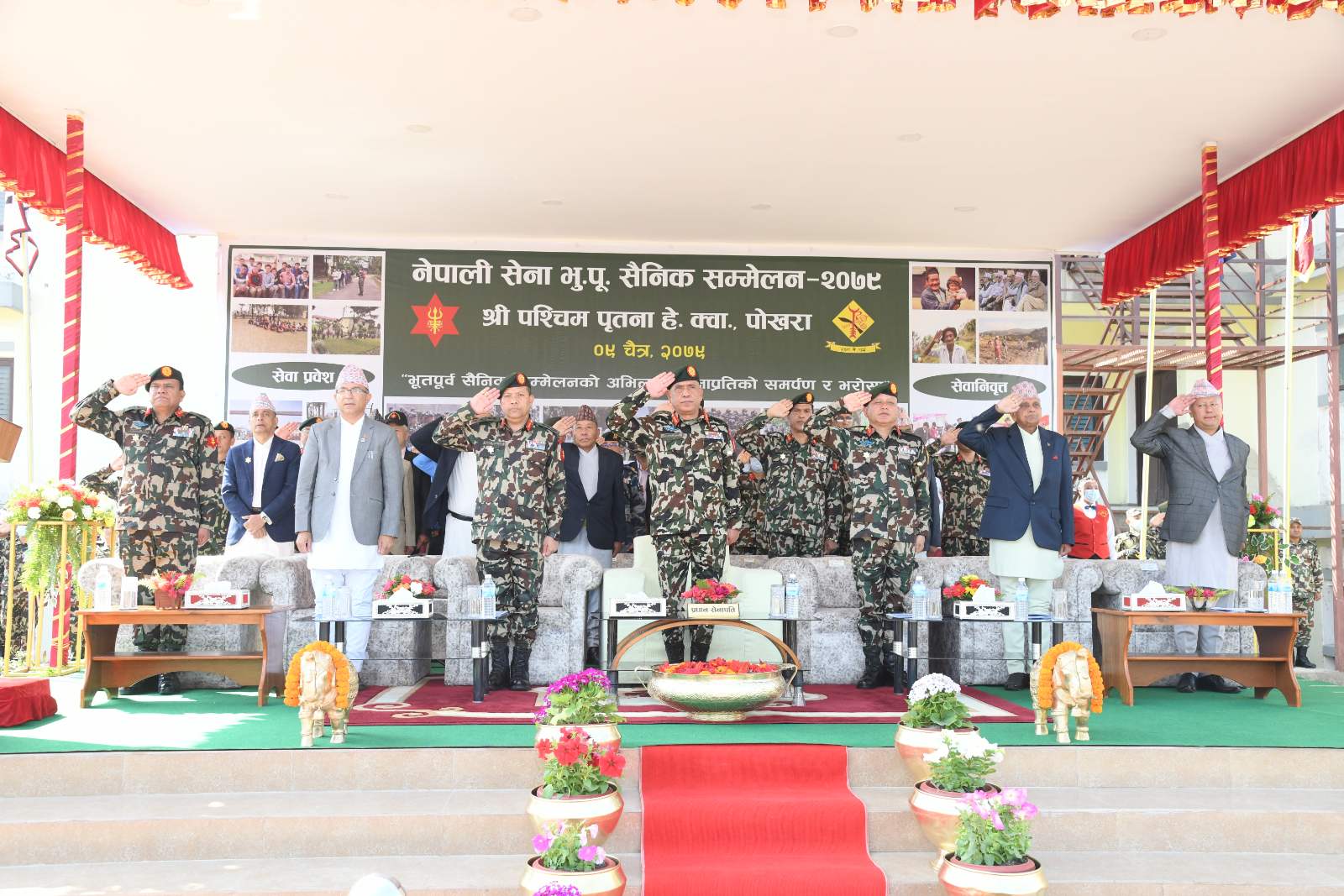 नेपाली सेना भूपू सम्मेलन- २०७९ को आज पश्चिम पृतना पोखरामा उद्घाटन गर्दै प्रधानसेनापति शर्माले नेपाली सेनाका बारेमा नचाहिँदो कुरा प्रचार नगर्न आग्रह गरेका छन्। आफ्नो कार्य र जिम्मेवारी पूरा गर्न नेपाली सैनिक के कति चाहिन्छ भन्ने कुरा सरकारले निर्धारण गर्ने उनले बताएका छन्।